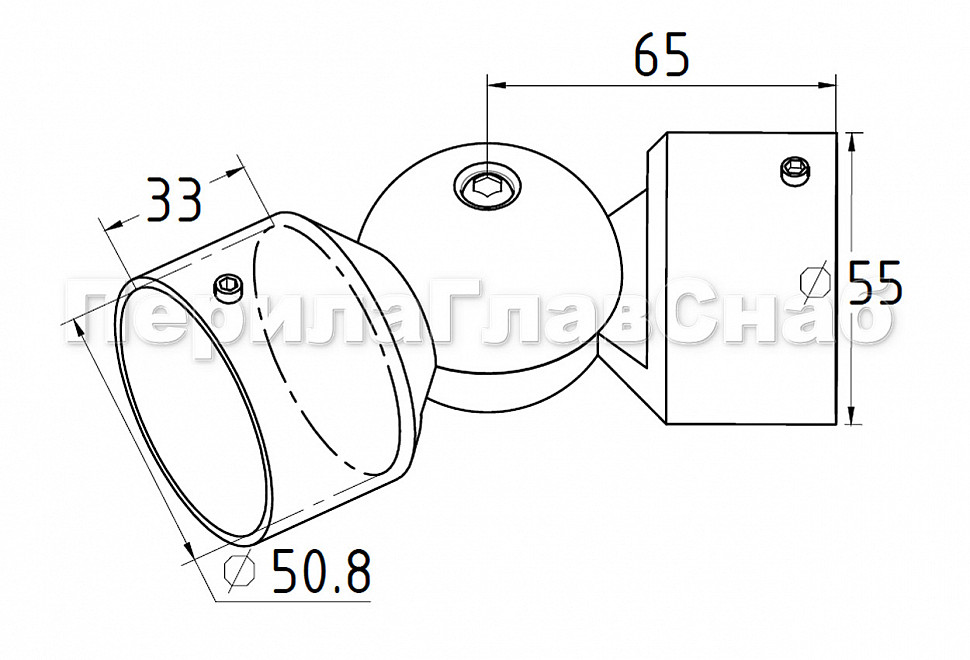 Подходит как для трубы Ø50.8 мм, так и поручней из дерева и ПВХ Ø49 мм