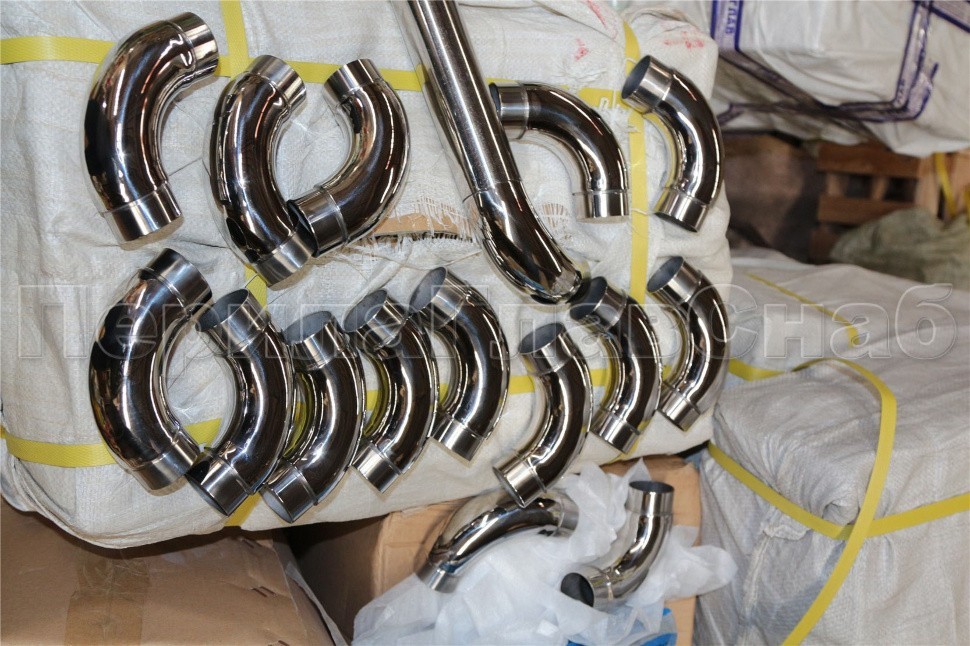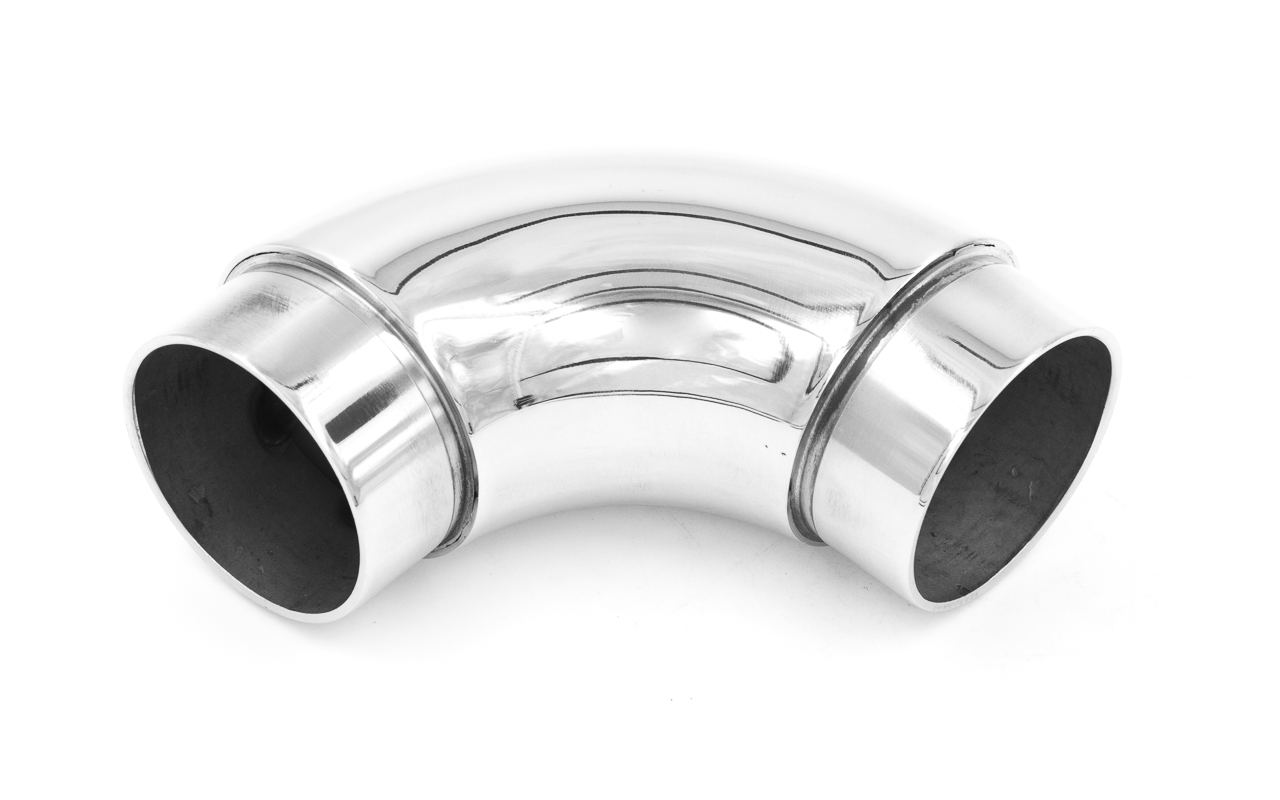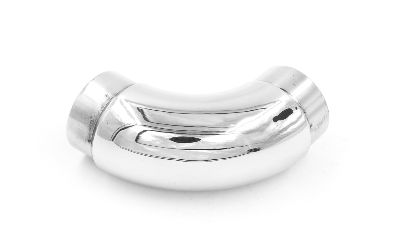 k383-3 отвод поручня под Ø42.4х1.5 мм, 90°, литой, полированный 600 Grit, с двумя установочными кольцами (AISI 201)