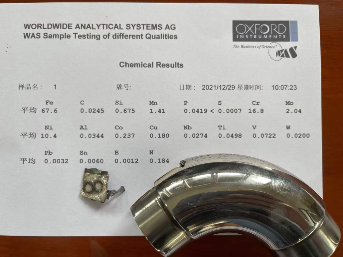 Отвод поручня под Ø42.4х1.5 мм, 90°, литой, полированный 600 Grit, с двумя установочными кольцами (aisi 316) k383-5