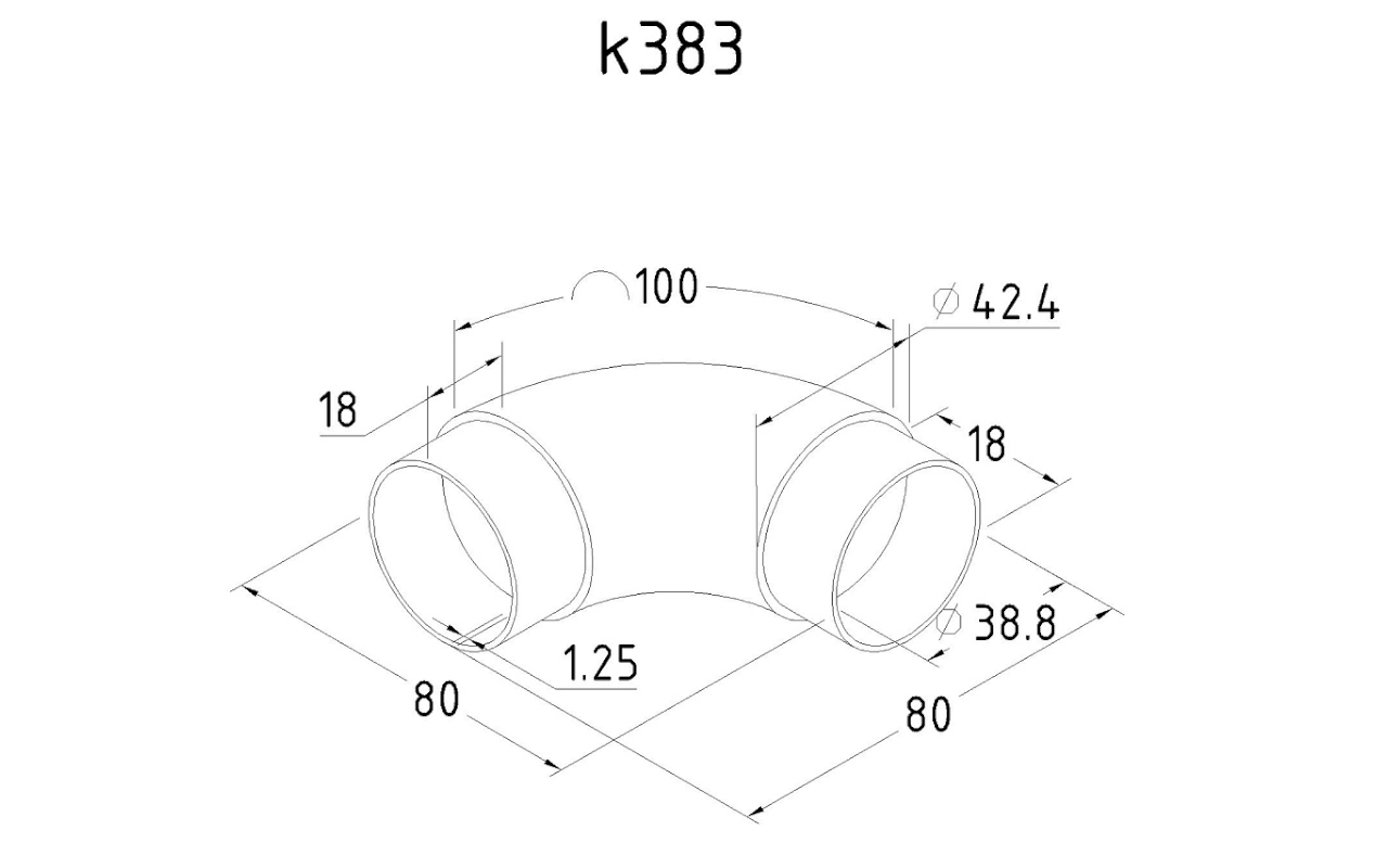 Прочный стальной поворот под трубу Ø38.1 разработан конструкторами нашей компании специально для монтажников и частных заказчиков, занимающихся самостоятельной сборкой перил ограждений из нержавейки. Сварной вариант поворота -  k095.