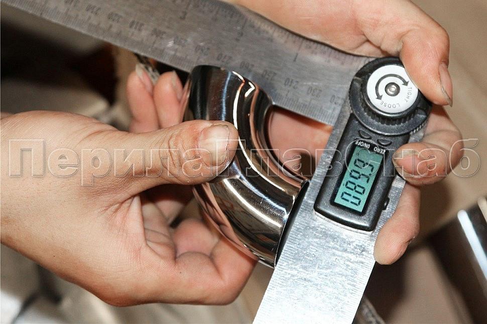 Если нужно повернуть перила под большим углом, то на концах поручней свариваются сразу два нержавеющих отвода. Наша модель разработана специально для поворота ограждения на узких лестничных маршах. Ведь если попытаться создать короткий отвод самостоятельно, из традиционной длинной модели, то простым срезом лишнего сегмента этого сделать не получится. Ведь сечение среза станет овальным. А как состыковать два овала в разных плоскостях? Вот тут-то и понадобится именно наша модель!