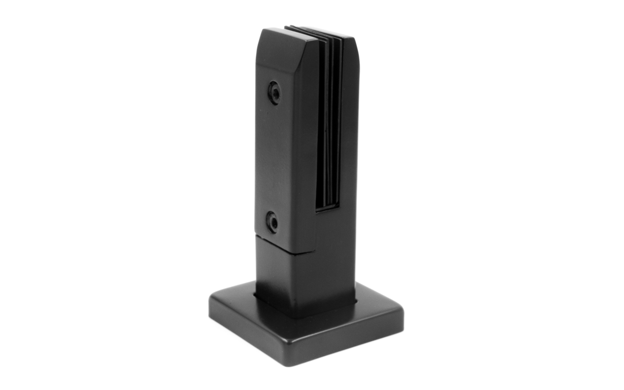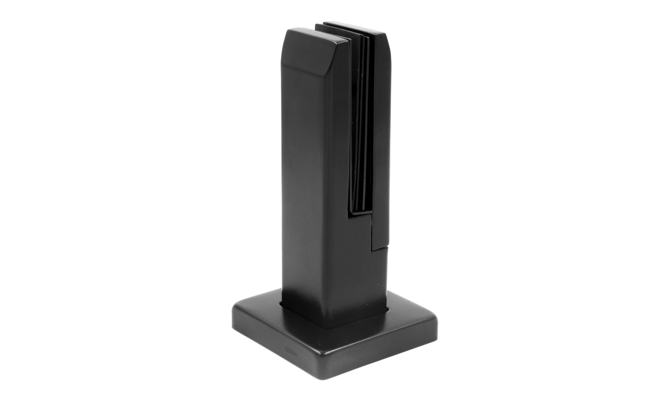 Стеклодержатель литой напольный, плоский 50х50х190 мм, для стекла 10-12 мм, черный RAL9005 мат, AISI 304 Фk275-2- BL