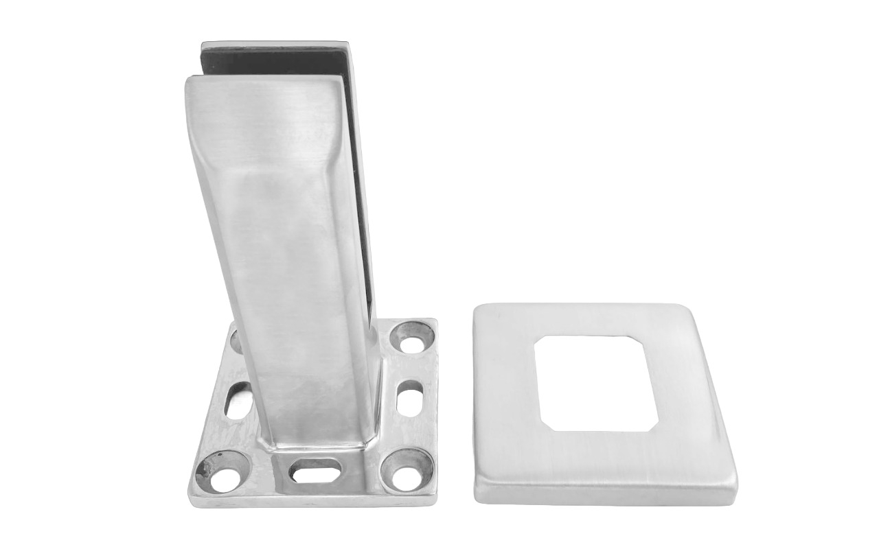 Стеклодержатель литой напольный, плоский 45х50х160 мм, шлифованный, без сверления стекла (AISI 304) Фk275-5-2