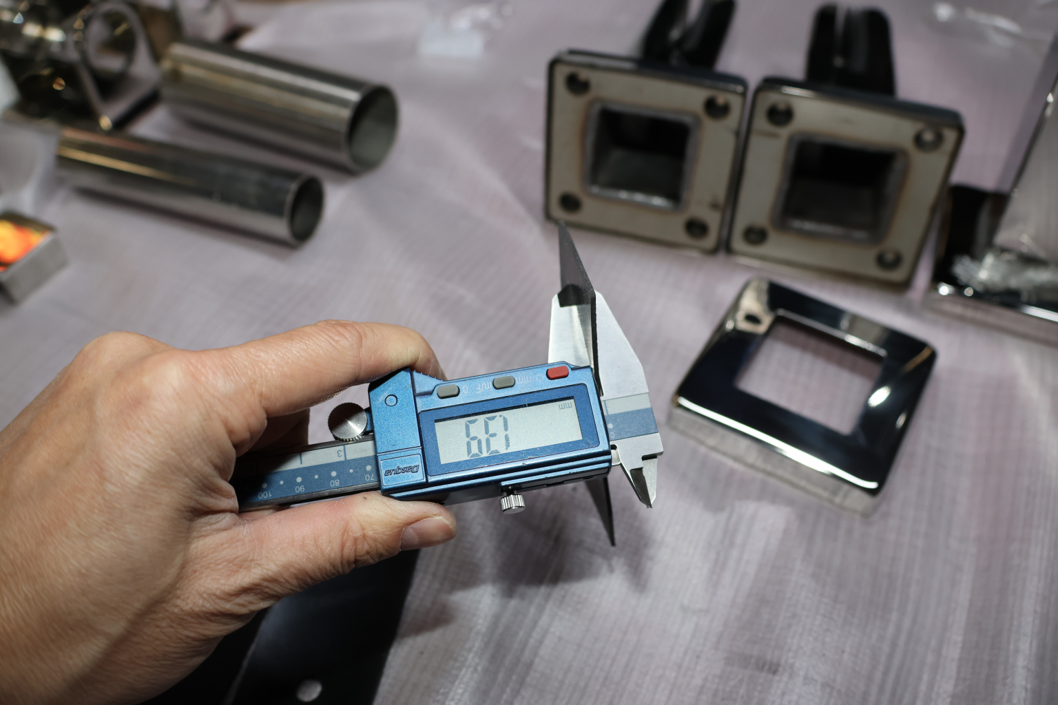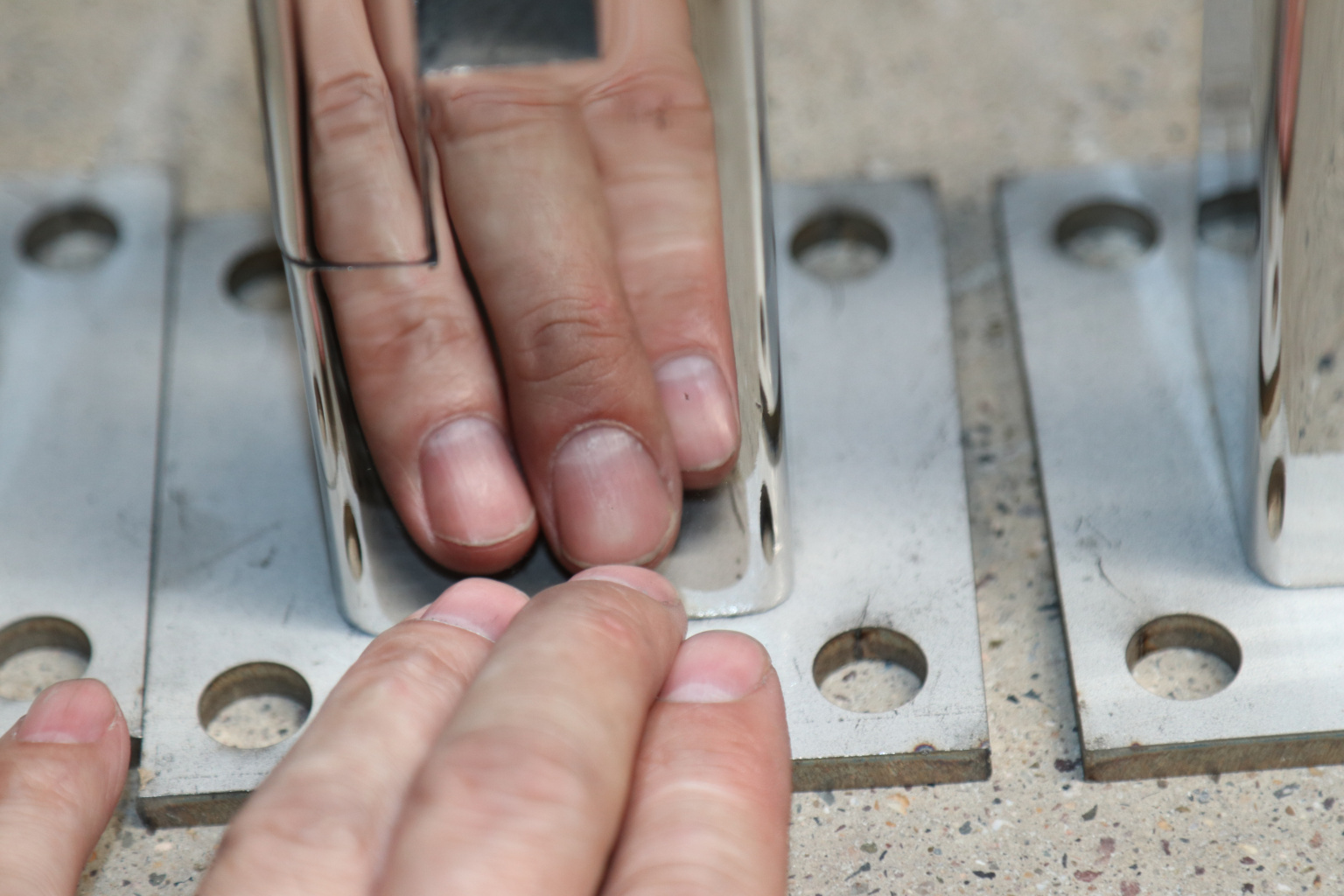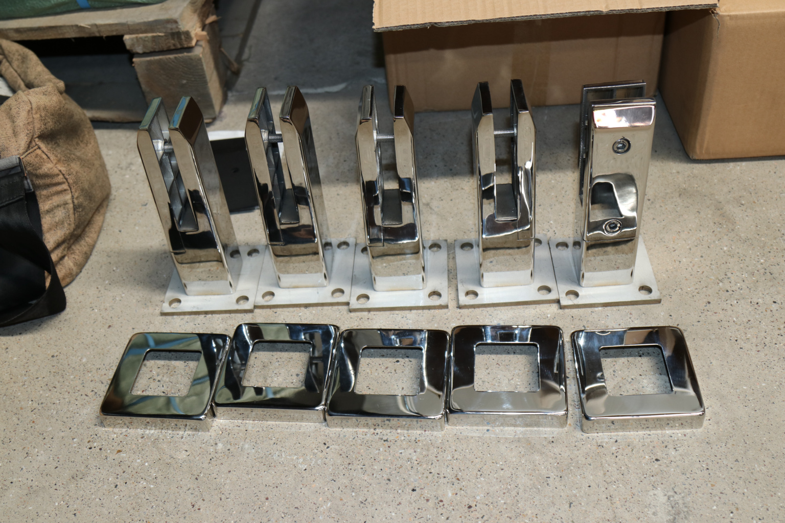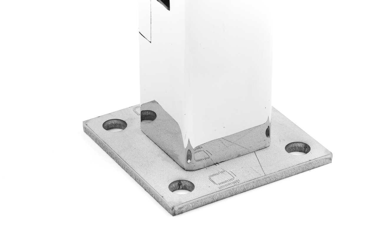 Стеклодержатель литой напольный, плоский 50х50х190 мм, для стекла 10-12 мм, полированный. Марка стали - AISI 304. Вам понадобиться для крепежа потайной винт под шестигранник k601-19-120. Необходимо отверстие в стекле- 16 мм.