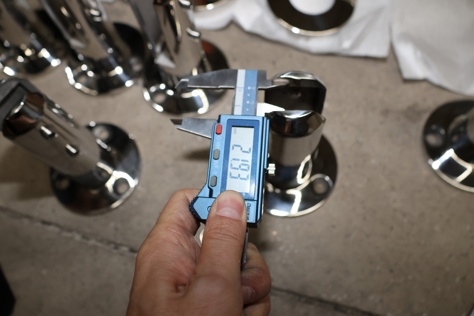 Стеклодержатель Ø50х10х18, шпилька М16х205 мм, для стекла 8-40 мм, AISI (201), с возможностью регулировки выноса до 65 мм, для торцевого крепления стекла, полированный, литой k277-3 купить в Санкт-Петербурге