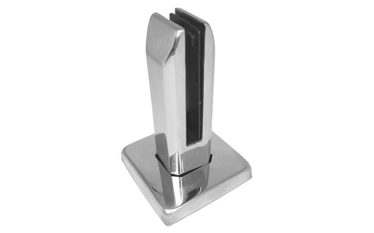 Стеклодержатель напольный, плоский 45х50х160 мм, для стекла 10 - 12 мм, полированный, без сверления стекла AISI 304 k282