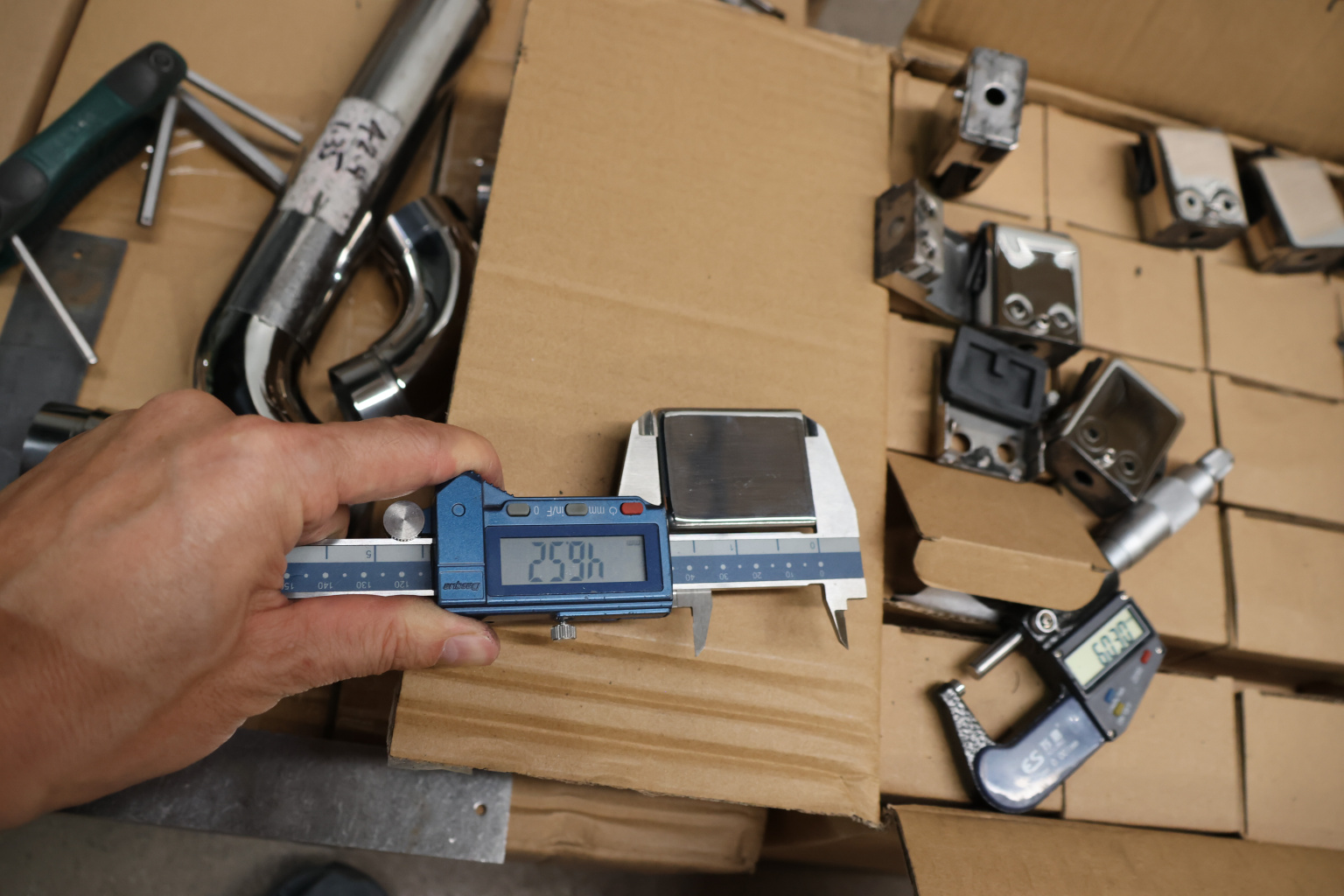 Наконечник на стойку из профильной трубы 40х40 мм, с регулируемым ложементом под плоскость, литой, полированный, нержавеющий AISI 304 k222-3 купить в Санкт-Петербурге