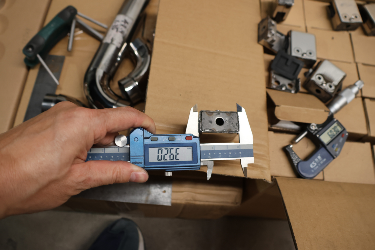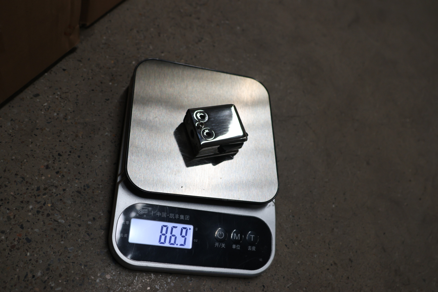 Наконечник палец на стойку из профильной трубы 40х40 мм, с регулируемым ложементом под поручень Ø50.8 мм, полированный, литой, облегченный нержавеющий AISI 304 k239-3 купить в Санкт-Петербурге