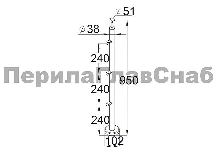 Стойка круглая Ø38.1: 3 ригеледержателя, полированная, высота 950мм (aisi 304)