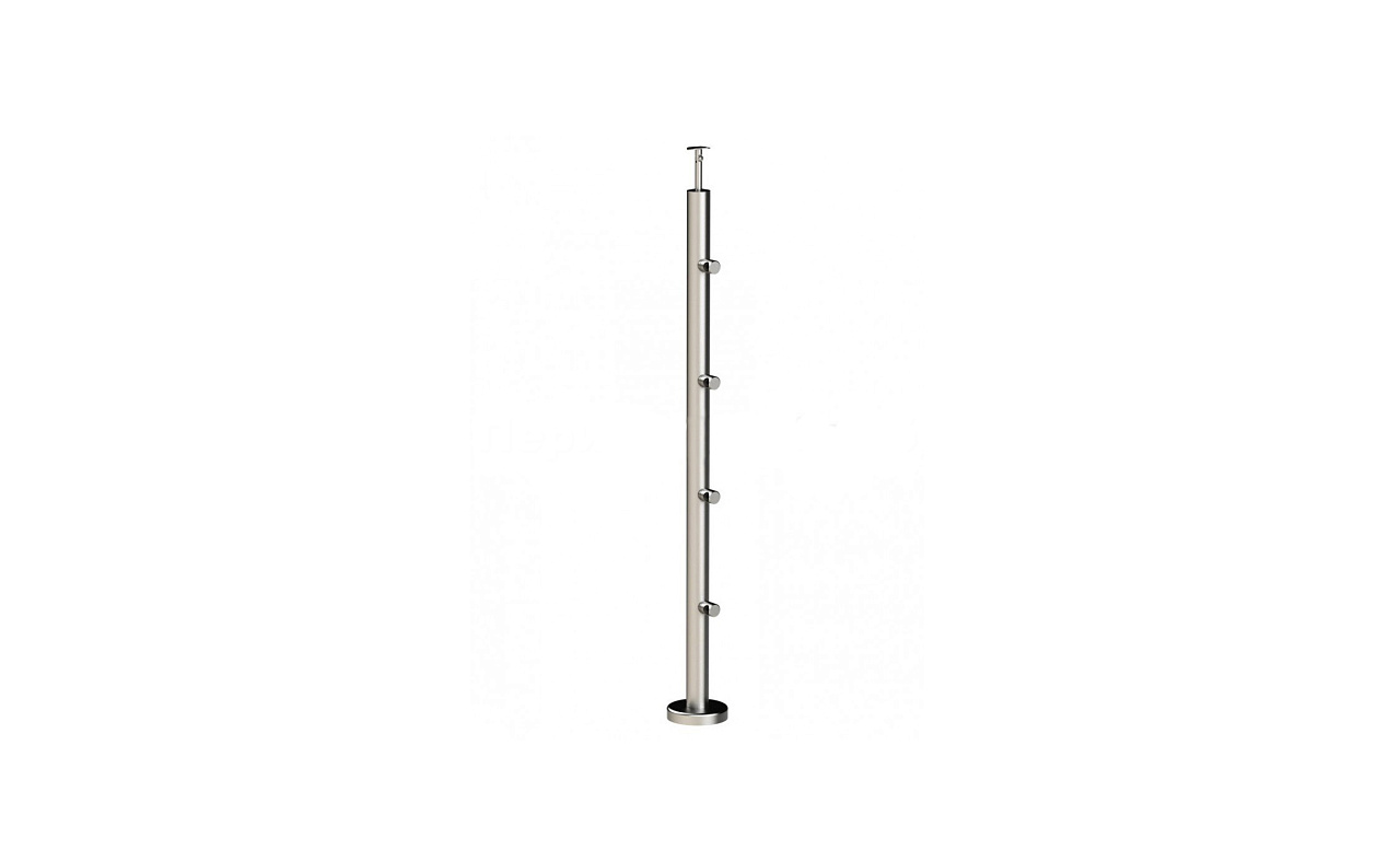 Стойка изготовлена на нашем производстве и готова к установке сразу после покупки.  Используемая при изготовлении 304 марка стали позволяет применять данную стойку как внутри здания, так и на улице. Особенно это важно для людей, которым важно сделать свои ограждения в одном стиле как внутри здания, так и снаружи. Все элементы стойки приварены аргонной сваркой, благодаря чему фланец с 3-мя отверстиями для крепления в пол, ригеледержатели под трубу ф16мм и наконечник под трубу ф38-50 составляют единую  конструкцию со стойкой. Сварные швы на балясине убраны и идеально заполированы, а балясина ничем не уступает ограждениям сделанным профессиональными бригадами. Любой человек сможет сделать монтаж имея только отвертку, клей(  ф-1127,  ф-1105) и саморезы(  М-3850,  М-3847,  М-3215). 4-х ригельная балясина - это усовершеннствованная 3-хригельная балясина. Данное ограждение идет с меньшим просветом между регилями по сравнению с  k713, что увеличивает ценность данной балясины. Благодаря меньшему растоянию между ригелями стойка становится сразу элегантнее и обеспечивает дополнительную безопаснорсть. Данная балясина подходит как для входной группы, так и в общественных зданиях. Данные стойки нашли свое применение в бизнесс центрах и общественных сданиях с большой проходимостью людей.