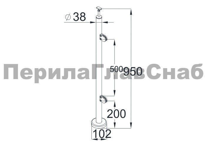 Cтойка круглая Ø38.1: 2 литых зажимн. стеклодержателя, полированная, высота 950мм (aisi 304)