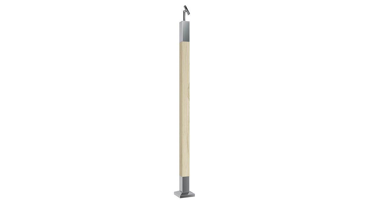 Готовая стойка 40х40х950 мм, деревянная нелакированная, дуб, с лежементом под плоскость, со вставками из нержавеющей стали 2х100 мм k740-12