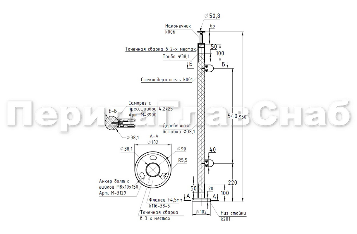 Готовые стойки – это экономия Вашего времени и денег. Приобретая готовую стойку Вы можете собрать ограждение сами, не привлекая монтажную бригаду и экономя денежные средства на монтаже. Стойка легко монтируется к полу благодаря треханкернуму фланцу с отверстиями под анкер-болт М8 ( , , ) или шпильку ( ; )  комплекте с хим анкером Ф-0799 или Ф-0800, а крепеж скрывает декоративная крышка идущая в комплекте стойки. Поручень из нержавеющей стали  можно закрепить при помощи самореза ( , , ), либо при помощи заклепки ( ) и винта М6 ( М-3973) что на порядок эффективней, для крепления при помощи заклепок необходимо растачивать отверстие в ложементе. Если вы используете пластиковый ( , , , , , , ) или деревянный поручень, то его можно закрепить при помощи саморезов ( , М-3850, ). После покраски дубовой проставки подклеиваете клеем ( Ф-1127, Ф-1105). Стекло заказывается после установки стоек и снятия размеров. После того, как стекло готово к установке, при помощи шестигранника ( , ) разъединяете стеклодержатель, надеваете стекло и закручиваете обратно. Ограждение готово!