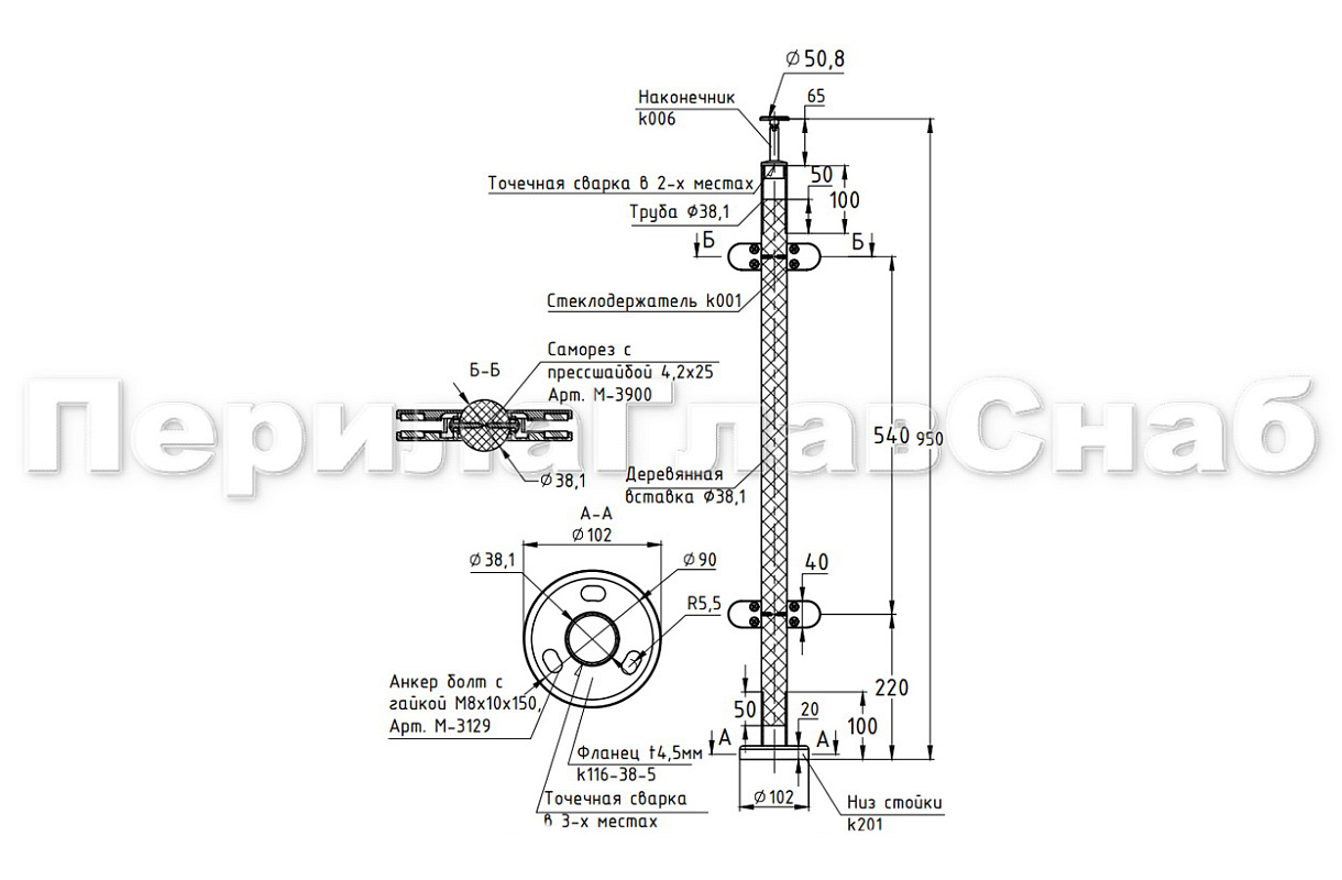 Готовые стойки – это экономия Вашего времени и денег. Приобретая готовую стойку Вы можете собрать ограждение сами, не привлекая монтажную бригаду и экономя денежные средства на монтаже. Стойка легко монтируется к полу благодаря треханкернуму фланцу с отверстиями под анкер-болт М8 ( , , ) или шпильку ( ; )  комплекте с хим анкером Ф-0799 или Ф-0800, а крепеж скрывает декоративная крышка идущая в комплекте стойки. Поручень из нержавеющей стали  можно закрепить при помощи самореза ( , , ), либо при помощи заклепки ( ) и винта М6 ( М-3973) что на порядок эффективней, для крепления при помощи заклепок необходимо растачивать отверстие в ложементе. Если вы используете пластиковый ( , , , , , , ) или деревянный поручень, то его можно закрепить при помощи саморезов ( , М-3850, ). После покраски дубовой проставки подклеиваете клеем ( ф-1127, ф-1105). Стекло заказывается после установки стоек и снятия размеров. После того, как стекло готово к установке, при помощи шестигранника ( , ) разъединяете стеклодержатель, надеваете стекло и закручиваете обратно. Ограждение готово!