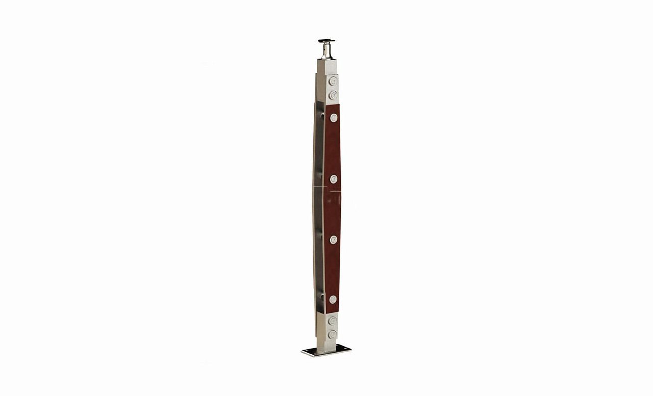 Стойка эксклюзивная с деревянной вставкой и 4 ригеледержателями, крепление в пол, нерегулируемый ложемент (aisi 304)