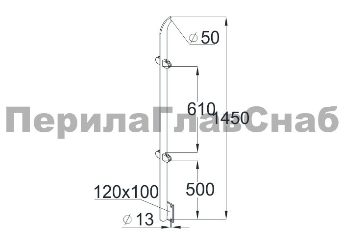 Стойка эксклюзивная с 4 зажимными стеклодержателями, крепление в торец, нерегулируемый ложемент (AISI 304) k761
