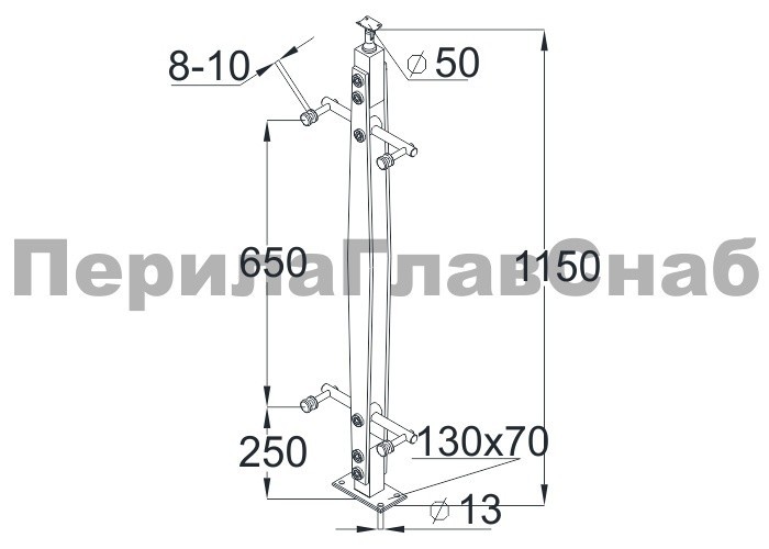 Готовая стойка 40х40х950 мм, деревянная, со вставками из нержавеющей стали 2х100 мм с 4 зажимными стеклодержателями k740-3 купить в Санкт-Петербурге