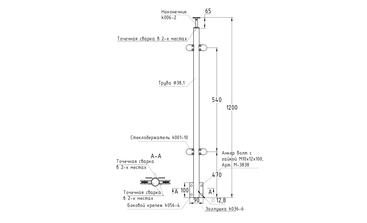 Готовые стойки – это экономия вашего времени и денег. Приобретая готовую стойку Вы можете собрать ограждение сами, не привлекая монтажную бригаду и экономя денежные средства на монтаже. Стойка легко монтируется к торцу. Отверстия под анкер-болт ( М-3129, М-3843, М-3838) либо при помощи шпильки М10 ( М-3963, М-3727, М-3964). Стекло ( С-8003, С-8023, С-8006, С-8047, С-8049) крепится в стеклодержателе за счет отсоединяющейся одной половины стеклодержателя при помощи шестигранника ( k931, k932).Поручень из нержавеющей стали так же легко закрепить при помощи сверла по нержавеющей стали ( k961-03, k961-03.5, k961р-03.5, k961р-03) и самореза ( М-3850, М-3847, М-3215). Либо при помощи заклепки ( М-3214) и винта М6 ( М-3973), для крепления при помощи заклепок необходимо растачивать отверстие в ложементе. Если вы используете пластиковый или деревянный поручень, то его можно закрепить при помощи саморезов ( М-3217).