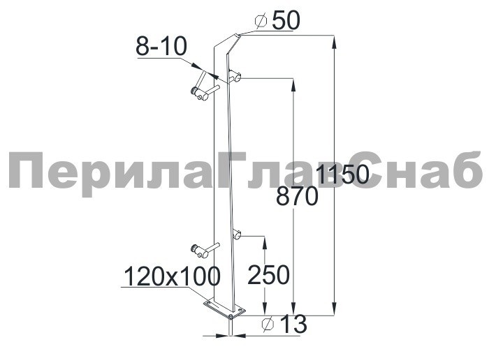 Стойка эксклюзивная с двумя спайдерными стеклодержателями, крепление в пол, нерегулируемый ложемент (AISI 304) k760