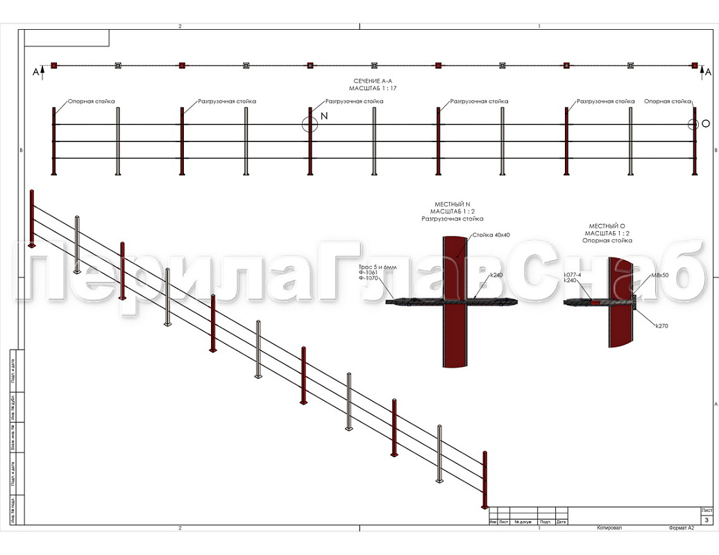Устанавливается на стойку ограждения с тросами, как правило в премиум классе, так как практически все конструкции подобного рода являются эксклюзивными и неповторимы по дизайну. Держатель служит для натяжения тросика между стойками, как правило, на ограждении их всего требуется по два на каждый трос. Таким образом, тросик фиксируется держателем на первой и последней стойке, дабы сохранить возможность регулировки силы натяжения. А для проводки тросика сквозь промежуточные стойки используется специальный талреп.