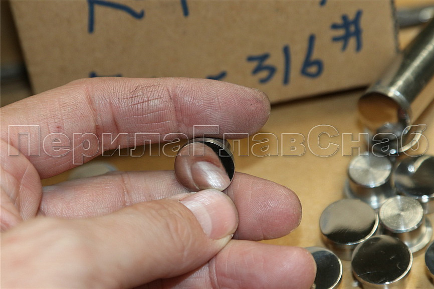 Заглушка для трубы диаметром 16х1.5 мм. Деталь полированная, точечная. Марка стали - AISI 316