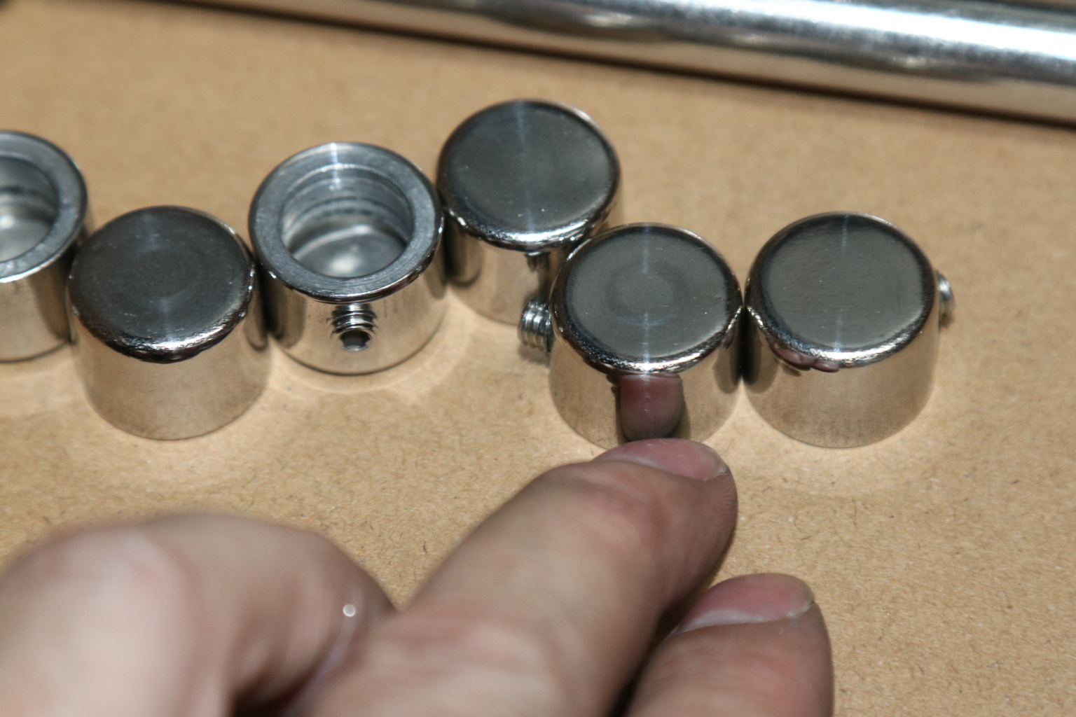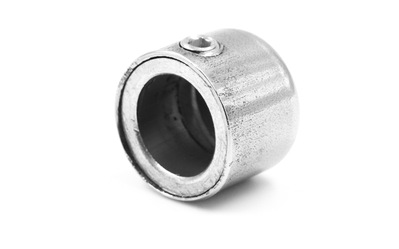 Заглушка наружная с отверстием на трубу диаметром 12 мм. Деталь полированная, штампованная. Марка стали - AISI 304