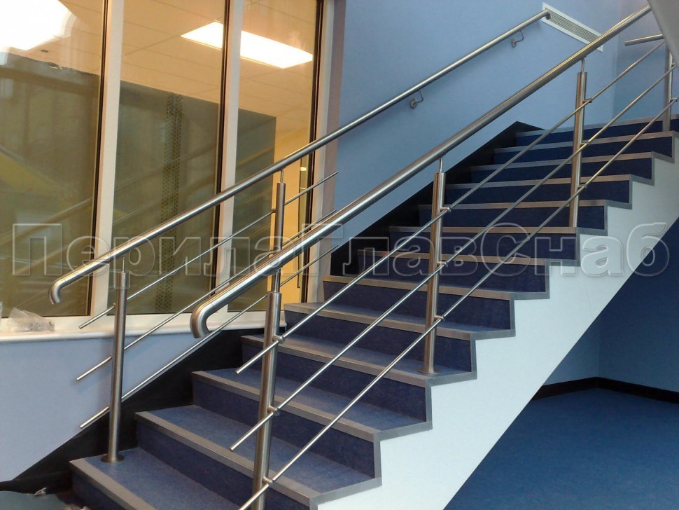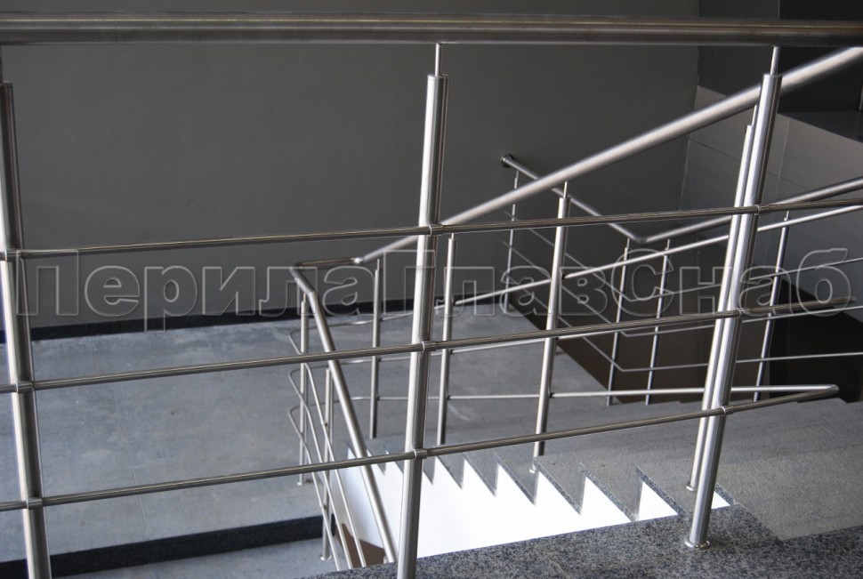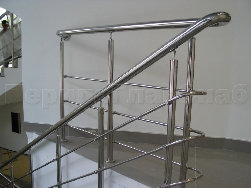 Четыре ригеля на сварке, круглый поручень и квадратные стойки