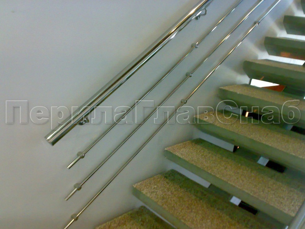 Три ригеля на держателях, круглый поручень и круглые стойки