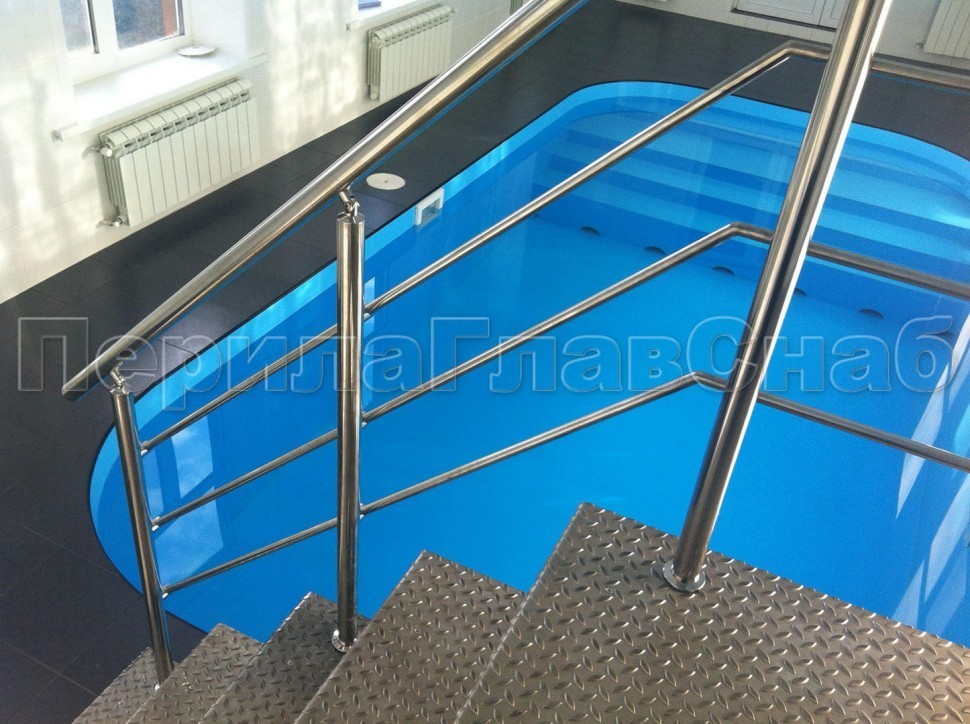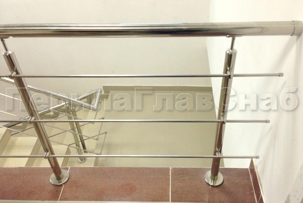 Три ригеля на держателях, круглый поручень и круглые стойки для крыльца
