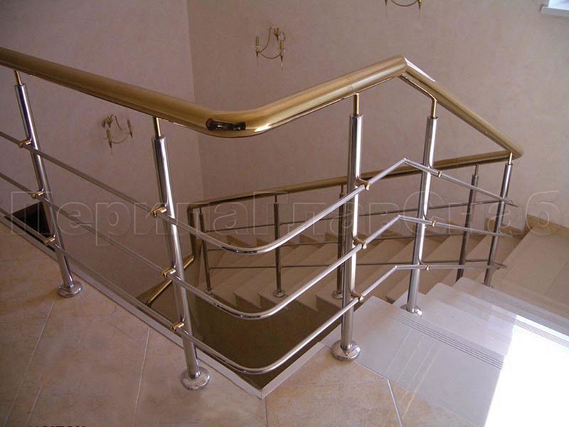 Лестничное ограждение с тремя ригелями и поручнем из латуни