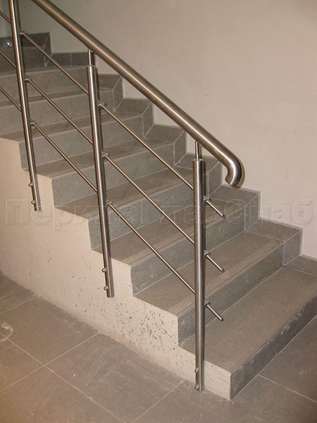 Четыре ригеля на сварке, квадратный поручень и круглые стойки