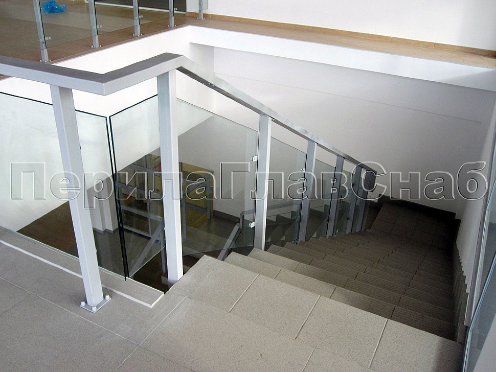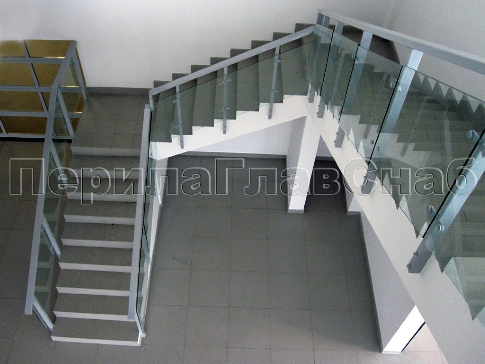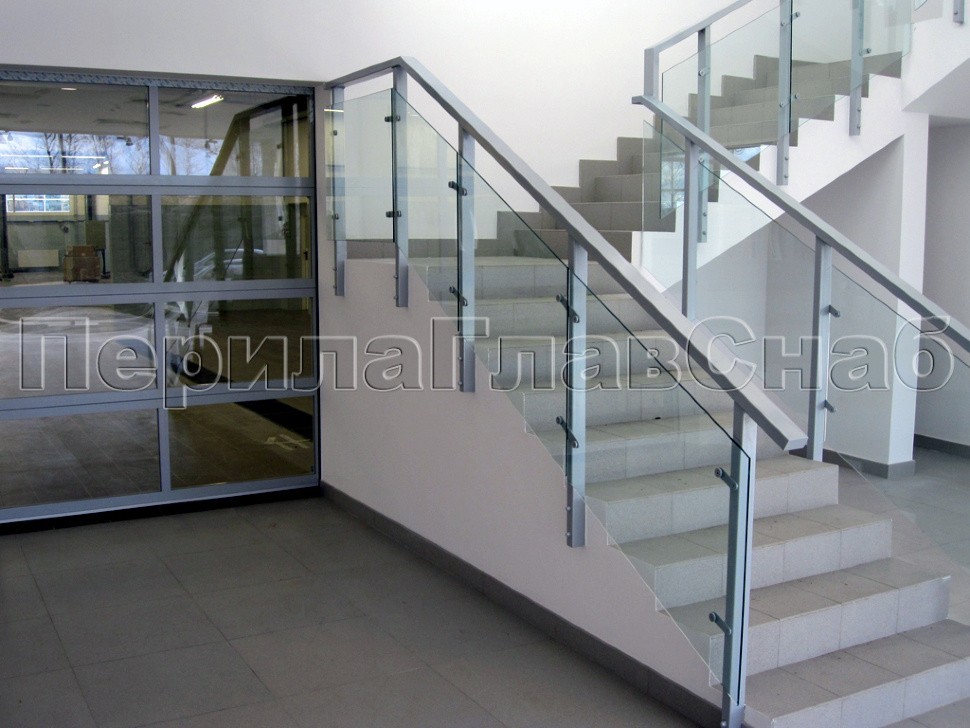 В целях увеличения полезной площади лестничного марша, ограждение устанавливалось в торец на специальных усиленных анкерах.