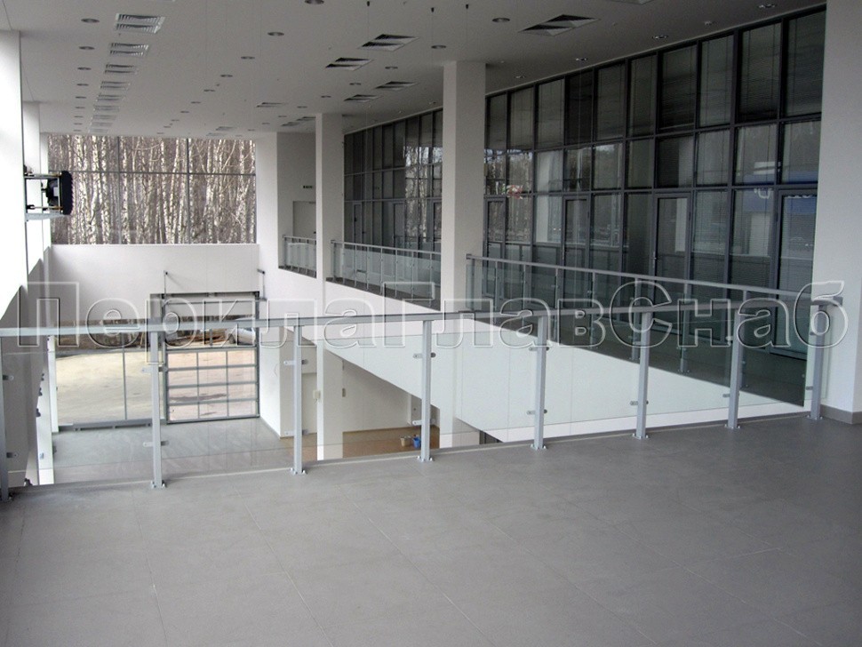 Отдельно следует отметить в числе характерных черт данного проекта, тот факт, что стекло устанавливалось на точечных стеклодержателях ЗА стойками ограждения, а не между ними, как это делается обычно.