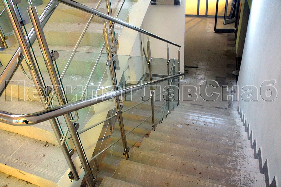 Ещё одной немаловажной особенностью стала необходимость сохранить максимум свободного пространства на лестнице. Ради этого стойки ограждения монтировались прямо в торец лестничного марша, благодаря чему удалось создать дополнительное пространство по ширине в целях обеспечения максимальной пропускной способности конструкции.