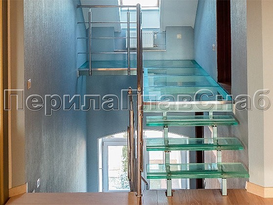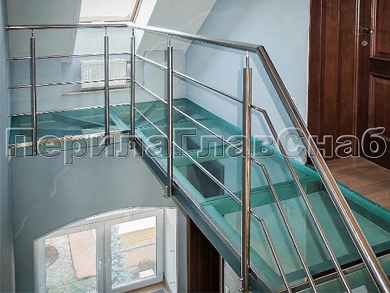 Так родились на свет ограждения балконов, изысканное лестничное ограждение главной входной группы с пристенным поручнем, стеклянные полы на втором этаже и ограждение атриума, плавно переходящее в ограждение косоурной стеклянной лестницы.