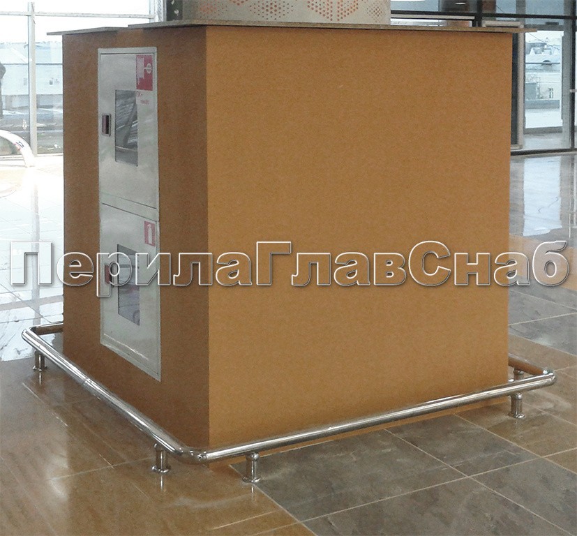 Для защиты стен и колон торгового центра установлены были колесоотбойники. Этого требовал проект реконструкции объекта. Использовалась труба 50мм из стали для внутреннего использования.