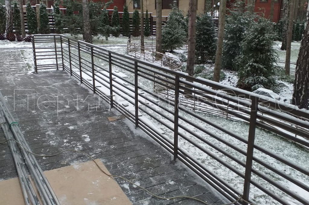 К нам в компанию обратился заказчик, с просьбой помочь изготовить и смонтировать тридцать пять погонных метров ограждений в частном доме, находящегося в коттеджном поселке класса De Luxe «Променад». Чтобы ограждения вписывались в общую концепцию экстерьера участка, мы предложили заказчику покрыть ограждения порошковой краской по каталогу Ral. А, для того чтобы избежать в дальнейшем коррозии металла мы использовали трубу и комплектующие из шлифованной нержавеющей стали. На шлифованную поверхность порошковая краска ложиться равномерно и помогает избежать, вздутия и в дальнейшем отслоения краски от металла. Для согласования с заказчиком конструктива и общего вида ограждений, нашим конструктором был разработан чертеж. Чертеж дает возможность заказчику понять где и как у него будут установлены перила и в случае возникновения дополнительных пожеланий внести корректировки до начала монтажа. Конструкция ограждения была выполнена из профильной трубы квадратного сечения, стойки и поручень труба 30*30мм, заполнение между стойками труба 20*20мм. Покраска порошковой краской должна производиться в заводских условиях с соблюдением всех технологических нюансов, в покрасочной камере.  Так как покрасочная камера имеет определенные размеры то для этого необходимо было разделить ограждения на секции. Работы по изготовлению ограждений проводились в несколько этапов, первым этапом был монтаж секций ограждений на объекте, затем его демонтаж для транспортировки в покрасочную камеру, после покраски секции доставлялись на объект для дальнейшего монтажа. Места сварки секций были зачищены, зашлифованы и подкрашены вручную, что никак не испортило внешний вид ограждений.  Работы по изготовлению и монтажу ограждений под ключ, были выполнены и сданы в течение тридцати рабочих дней.