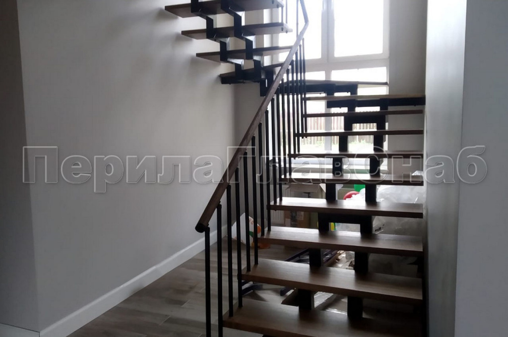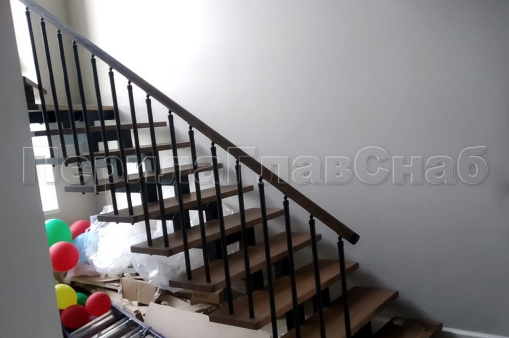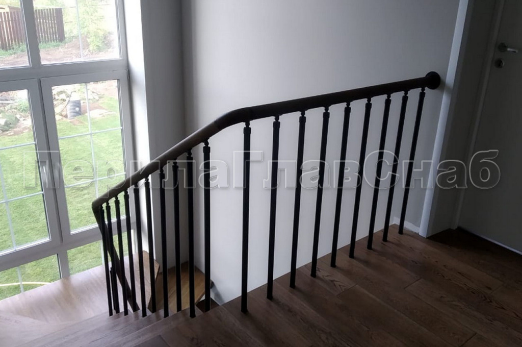 На северо-востоке Московской области в частном доме было изготовлено и смонтировано ограждение с вертикальным заполнением. Деревянный дом и уже установленная лестница самим заказчиком задали вектор по выбору перил. Под цвет ступеней был подобран и нанесен окрас поручня из массива дуба. Для подбора цвета клиент предоставил образец ступени, что позволило выбрать цвет с максимальным сходством. А стойки и вся фурнитура ограждения были специально выкрашены в черный цвет, что-бы не выделяться на фоне черного косоура лестницы. Для жесткости ограждения был выработан и применен на практике комплекс мер. Все стойки перил проходят ступень насквозь, такой метод крепления выбран специально для ступеней с небольшой толщиной. Вначале лестницы первую ступень трубы так же проходят насквозь, но уже бурятся непосредственно в пол, жестко фиксируя связку. Поручень ограждения идет непрерывной линией по всем восьми метрам погонным. На поворотах поручень завязан через специальный штифт и декоративные кольца и посажен на клей. К стене он закреплен фланцем. Таким конструктивом компания ПерилаГлавСнаб решила сразу две задачи. Первую – стилистическую. Перила отлично гармонируют со спокойным классическим стилем загородного дома. Оказывается перли из нержавейки – это не только офисный вариант, но и достойная альтернатива кованным ограждениям – достаточно грамотно подобрать дизайн. И вторую, по безопасности в ходе эксплуатации перил. Ведь в доме находится маленький ребенок, а значит он не сможет пролезть сквозь стойки, или перелезть через перила – родители будут спокойны. Стоимость метра погонного составляет 28 000 руб.