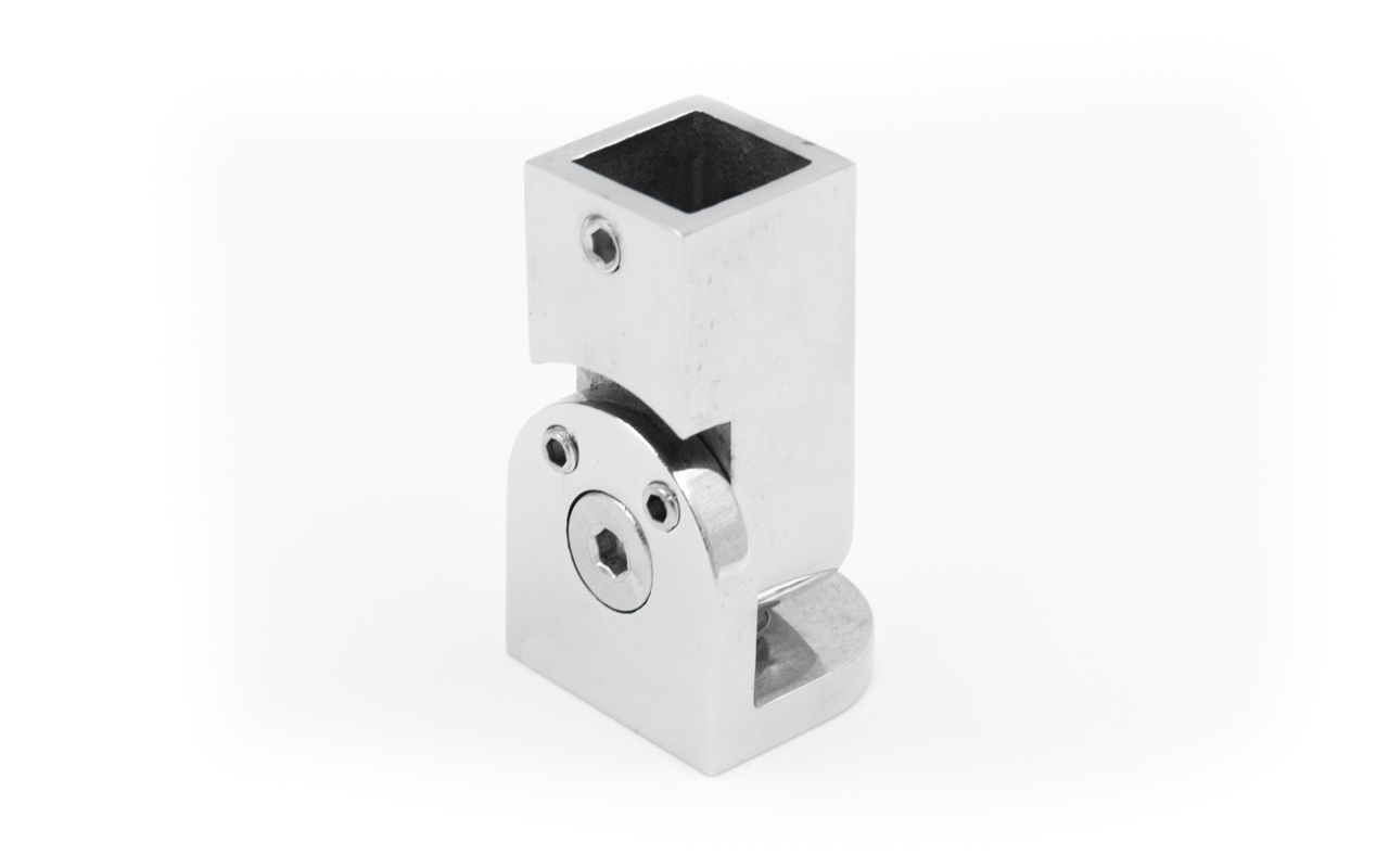Держатель трубы регулируемый, под 15х15 мм, полированный, марка стали- AISI 304