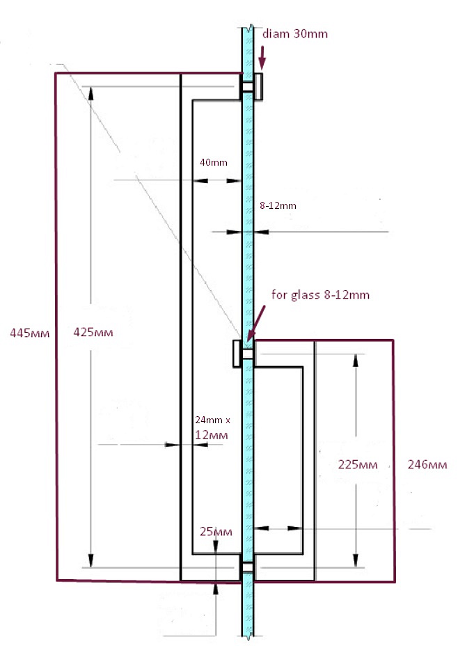 Ручка 225х425 круглая + квадратная труба, поверхность- полированная, марка стали- AISI 304