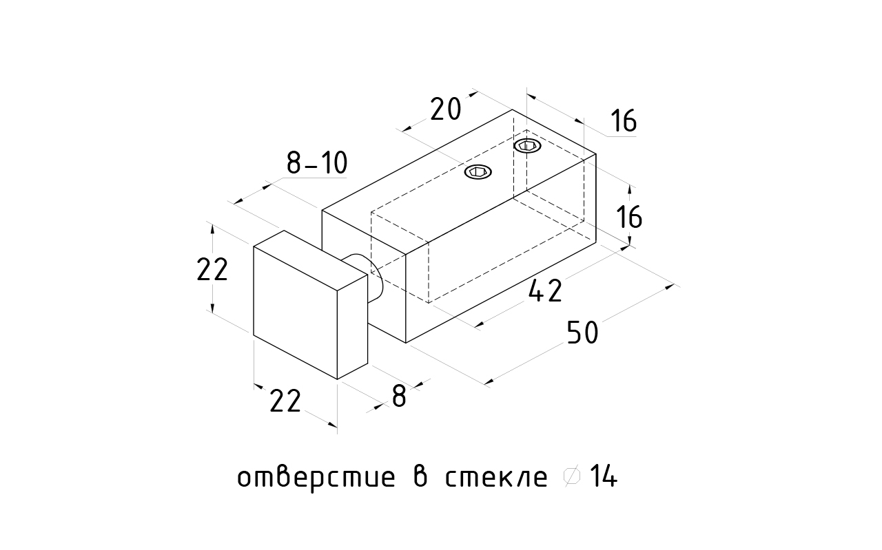Предназначен для соединения штанги в душевых кабинах, позволяя соединить ее без сварки. Служит для крепления прямоугольного трека к стеклу. Крепится к стеклу через отверстие. Габаритные размеры прямоугольной станки составляют 15х15 мм.