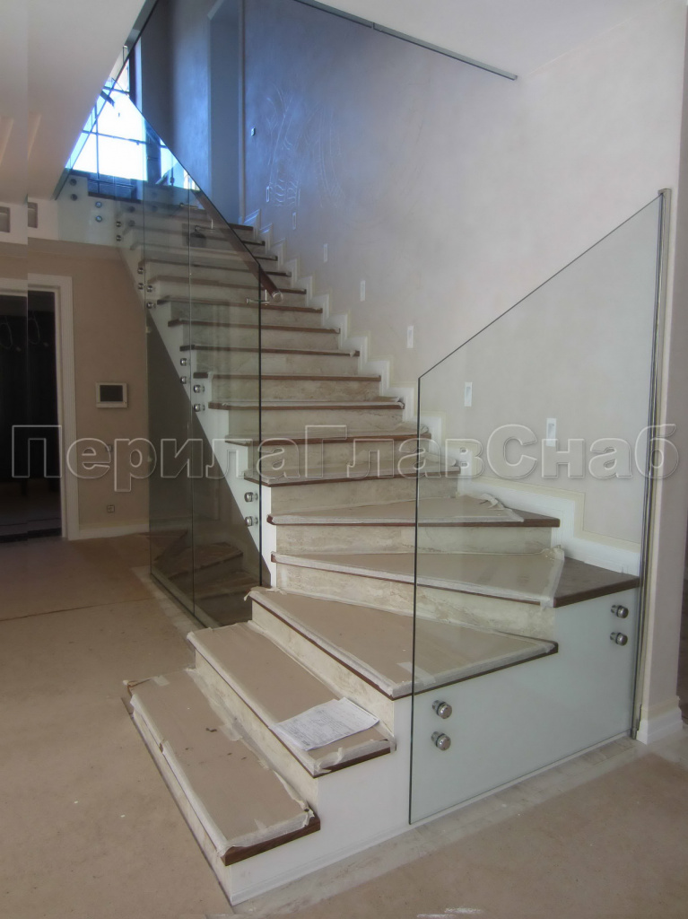 Цельностеклянные ограждения на несущем стекле