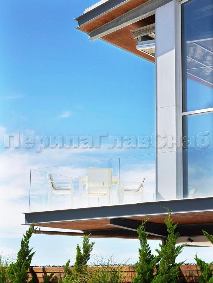 Это ограждение балконов экранного типа, с заполнением из стекла. Полностью отсутствуют стойки, поэтому конструция внешне выглядит очень целостной.