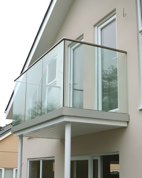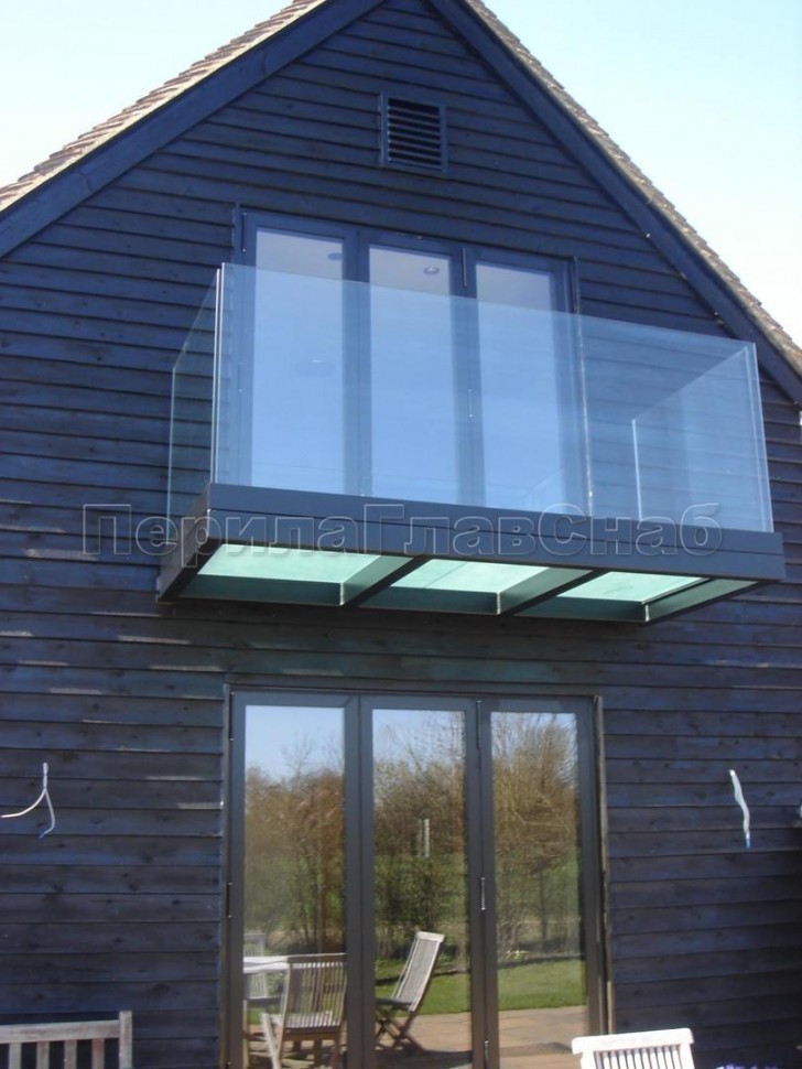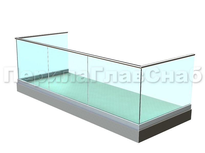 Данный тип ограждений в своей конструкции стоек не содержит. Несущие функции выполняет толстое каленое стекло. Само же несущее стекло крепится к балконной плите на алюминиевый профиль, который способен выдержать очень большие нагрузки, поэтому очень надежный.