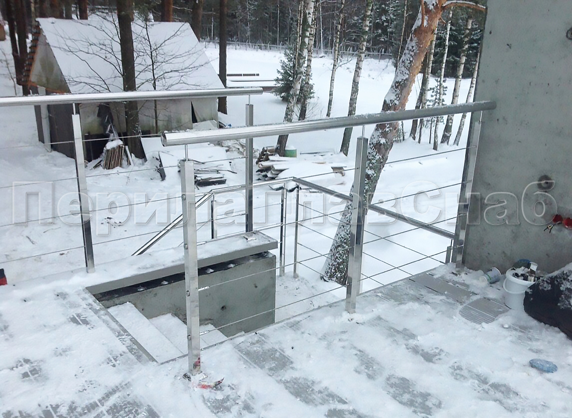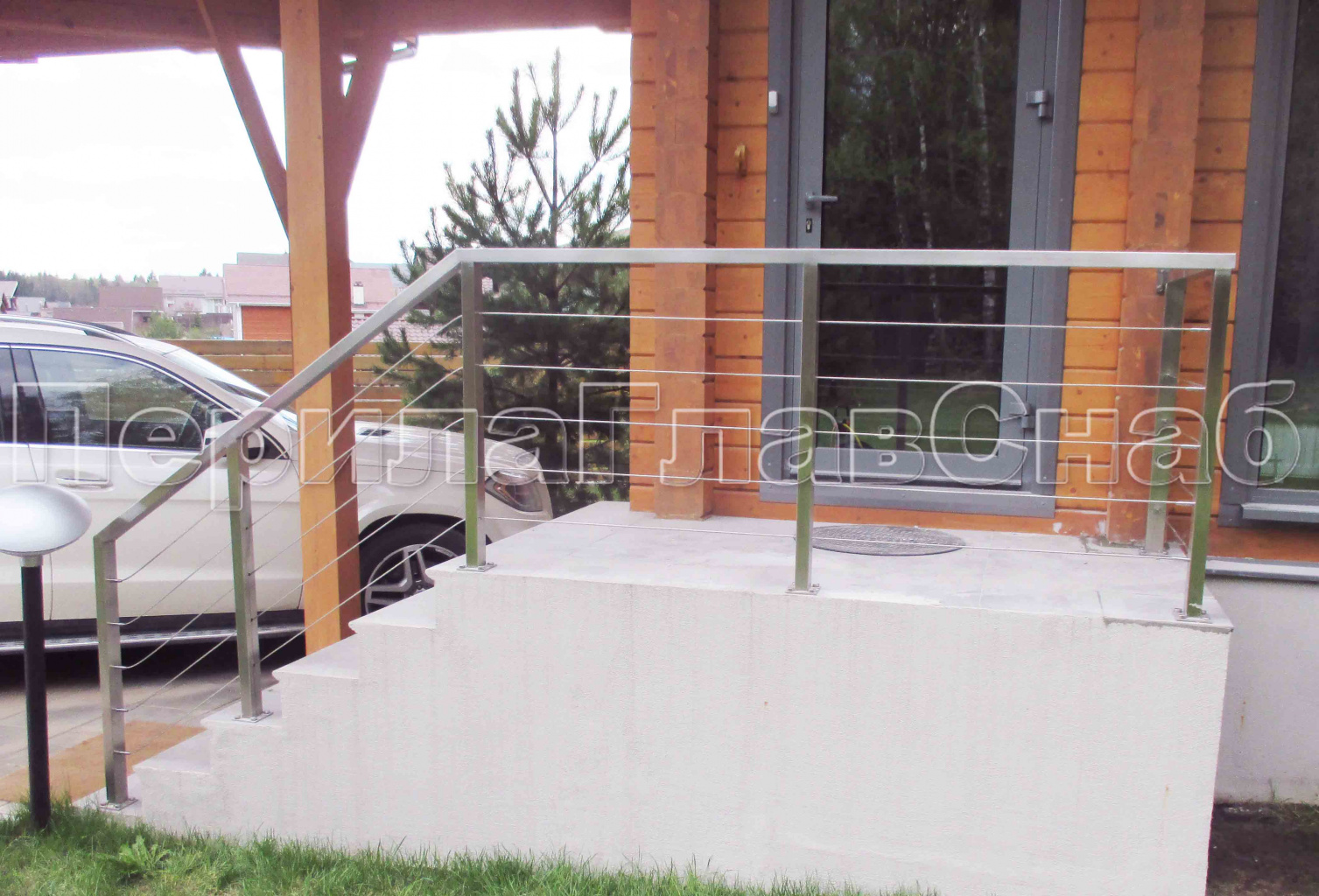 Ограждения из нержавейки. Заполнение из тросиков (нестандартная конфигурация) для крыльца