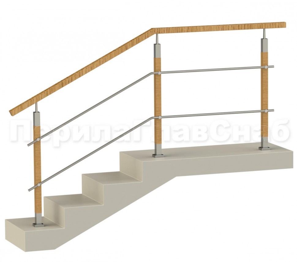 Два ригеля на держателях, круглый поручень и квадратные деревянные стойки