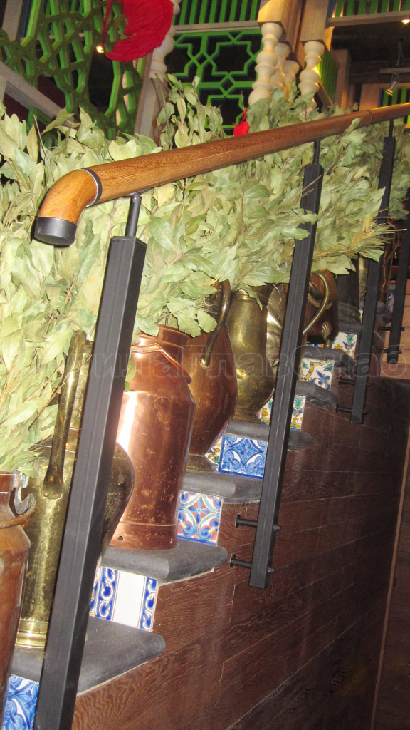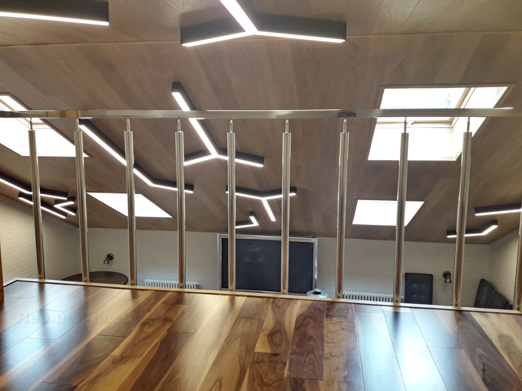 Нержавеющие ограждения без ригелей с круглым деревянным поручнем и стойками с деревянными вставками