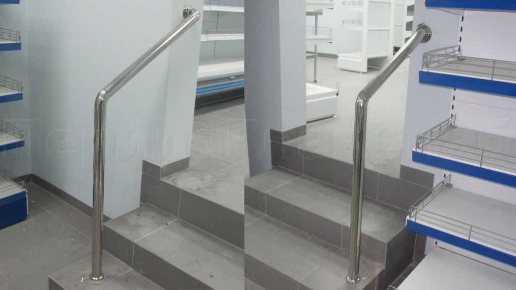 Ограждения с двумя стойками в каждую ступень с пластиковым поручнем и без ригелей