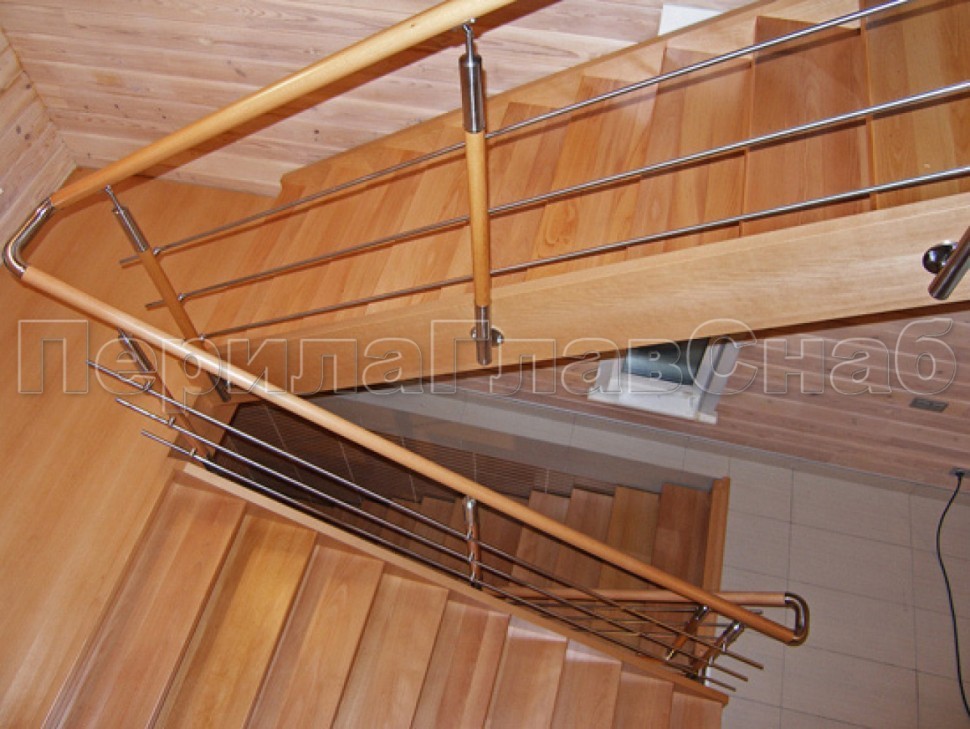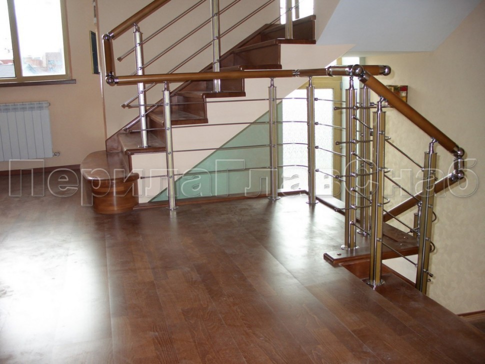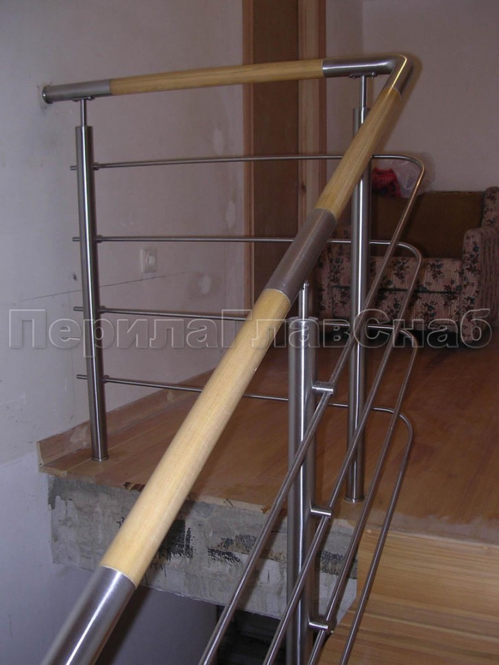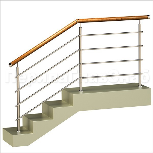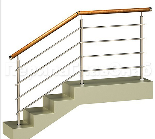 Записаться на встречу Четыре ригеля на держателях, круглый деревянный поручень и круглые стойки