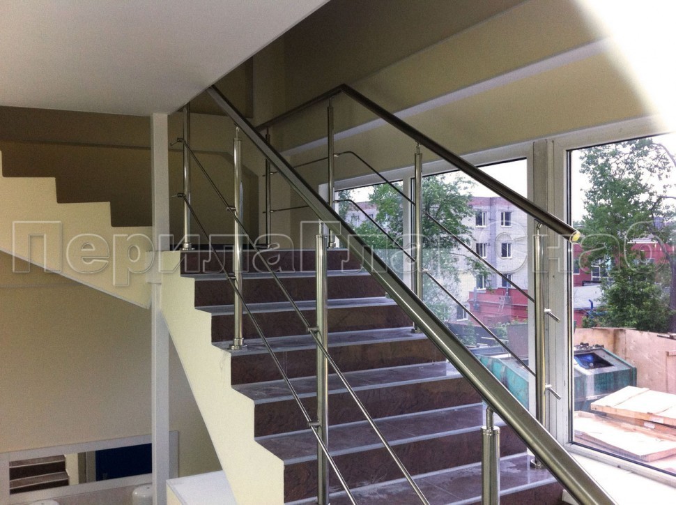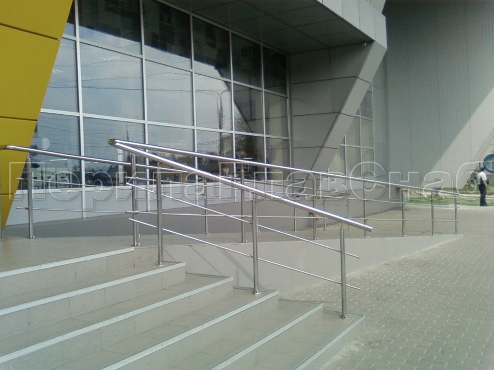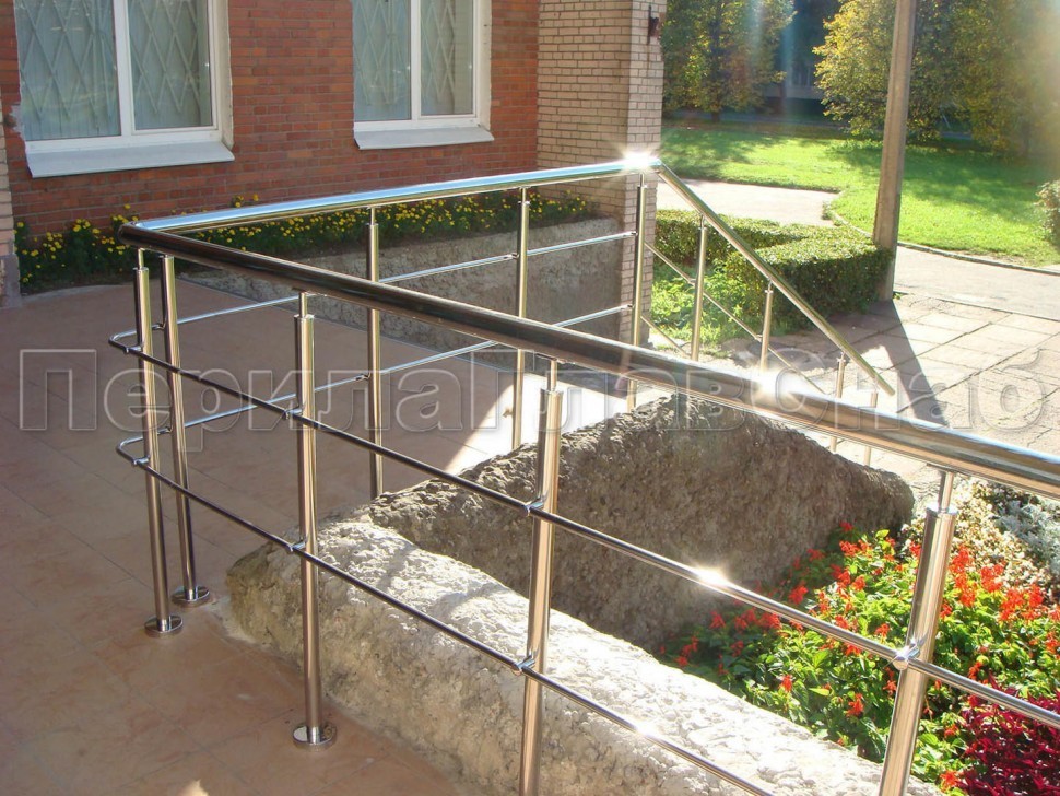 Записаться на встречу Два ригеля на держателях, круглый поручень и круглые стойки